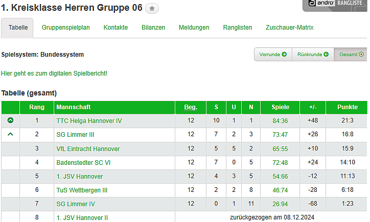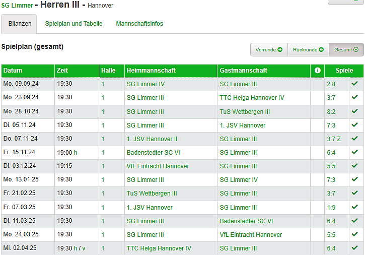 Spielklasse III. Herren 2024/25 1. Kreisklasse