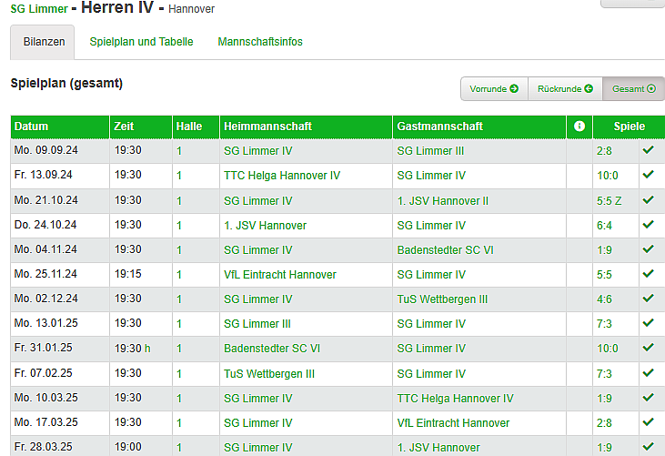 Spielklasse IV. Herren 2024/25 1. Kreisklasse