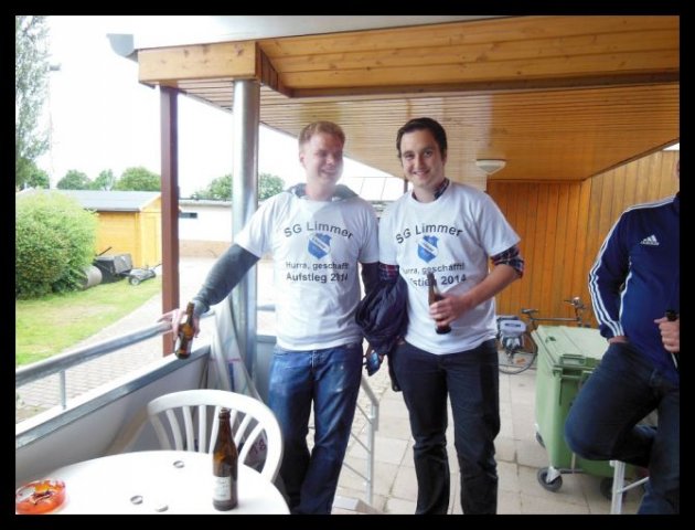 Unsere I. Herrenmannschaft hat den Aufstieg in die 2. Kreisklasse geschafft. Am Freitag hat ein Spieler unserer 1. Herrenmannschaft auf der NFV Seite festgestellt, dass wir in die 2. KK eingestuft wurden. Danach liefen die Leitungen heiß. Facebook sei Dank. Die Nachricht verbreitete sich wie ein Lauffeuer. Der Tabellenerste BSC II konnte nicht aufsteigen, da die I. von BSC abgestiegen ist. In der 2. KK haben Iraklis und Arminia Hannover ihre 2. Mannschaften nicht mehr gemeldet. So war für uns der Weg in die 2. KK frei. Damit hat sich die Mannschaft für Ihre Aufholjagd in der Rückrunde doch noch belohnt. Beim Saisonabschluss stand die 1. Herrenmannschaft auf den 5. Tabellenplatz. Die Freude bei den Spielern, dem Trainer- und Betreuerstab sowie dem Vorstand und den Fans der 1. Herrenmannschaft war riesig. Spontan wurde am Freitag vom Trainer Bernd (Leo) Lautenbach eine kleine Feier für Samstagabend organisiert. Leider konnten nicht alle Spieler dabei sein. Aber die, die dabei waren haben ihr kommen nicht bereut. Natürlich wurde auch das WM Spiel Deutschland – Ghana nicht verpasst.Der Vorstand hat es sich nicht nehmen lassen, kurzfristig T-Shirts für den Aufsteiger zu besorgen. Dies war eine schwierige Aktion und die richtige Herausforderung für unsere Gitta. Dank dem persönlichen Einsatz von Gitta war es möglich in nicht mal 24 Stunden die passenden T-Shirts zu bestellen, diese bedrucken zu lassen und vor Ort zu bringen. Aber, die Arbeit hat sich gelohnt. Die anwesenden Spieler und der Trainer haben sich über diese T-Shirts riesig gefreut. Die nicht anwesenden erhalten Ihre T Shirts nach der Sommerpause. Der Vorstand wünscht seiner 1. Herrenmannschaft für die neue Saison viel Erfolg, dem Trainertaem ein gutes Händchen, dass dies nicht die letzte Aufstiegsfeier in unserer Vereinsgeschichte ist.