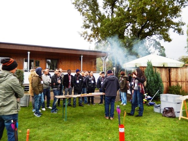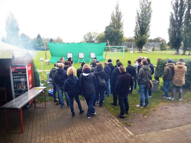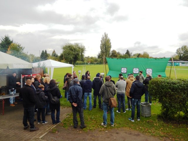 Pünktlich zum Aufbau der Schießscheiben hatte der Regen aufgehört und die Veranstaltung konnte beginnen. Das Interesse an dieser Sportart war sehr groß. 28 Teilnehmer verschiedener Nationalität haben sich an der Veranstaltung beteiligt. Nach kurzer Einleitung durch Herrn Venter konnte es losgehen. Nachdem die ersten Pfeile ihr Ziel knapp verfehlt hatten, wurden die Teilnehmer immer besser. Die Trefferquote stieg von Mal zu Mal und die Stimmung auch. Unterm Strich kann man sagen, es hat allen die teilgenommen haben gut gefallen. Einer Wiederholung steht, glaube ich, nichts im Weg. Für das leibliche Wohl sorgten unsere Vereinswirte Christian und Andreas. Sie verwöhnten die Teilnehmer mit selbstgemachten Kartoffelsalat und leckeren Grillwürstchen. Der Vorstand der Sportgemeinschaft Limmer möchte sich noch mal ganz herzlich für die gute Zusammenarbeit mit dem KANU Wasser Wander-Service aus Bad Münder bedanken. Herr Venter und seine Mitarbeiterin Marina haben tolle Arbeit geleistet und dazu beigetragen, dass der Event für die SG Limmer ein toller Erfolg wurde.