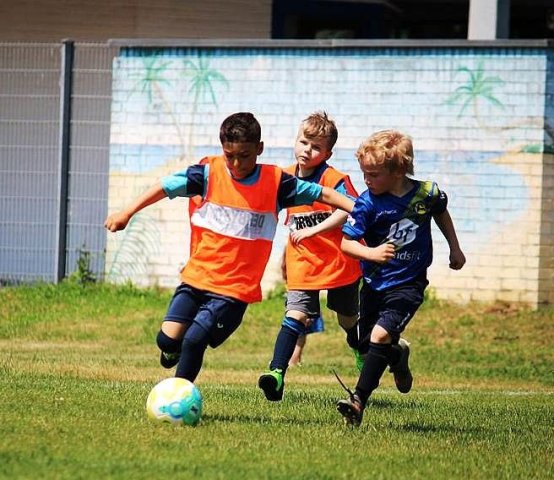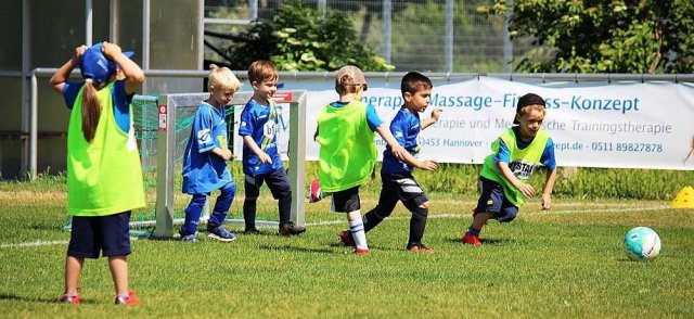 Unsere Bambinis konnten sich, nach einem Jahr Training, zum ersten Mal mit einer anderen Mannschaft messen. Der SV Ahlem war mit seinem 2018 Jahrgang zu Gast, um unsere Kleinen in der Funinio-Spielform herauszufordern. Bei hochsommerlichen Temperaturen gaben beide Teams ihr Bestes und ließen sich die Hitze nicht anmerken. Getreu dem Motto ‚erst die Arbeit, dann das Vergnügen‘ haben die Kids durchgehalten und dann?