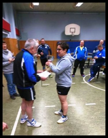 Bei den Damen konnte sich erwartungsgemäß Michéle klar und deutlich mit nur einen Satzverlust durchsetzen. Auf den Plätzen 2-4 ging es zum Schluss um die Anzahl der Sätze, hier konnte Silke sich die Silbermedaille sichern: