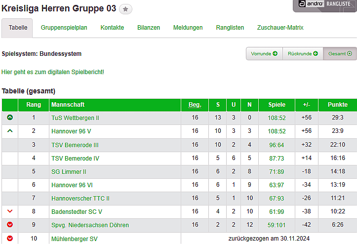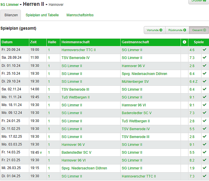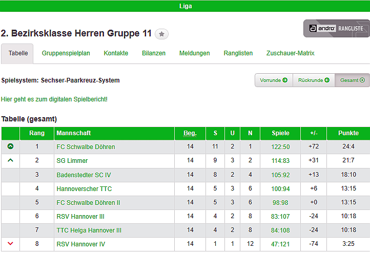 Spielklasse I. Herren 2024/25 2. Bezirksklasse