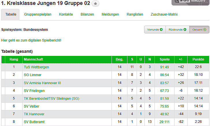 Spielklasse Jungen 2024/25 1. Kreisklasse