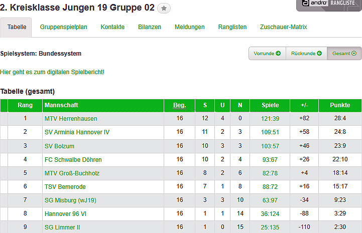 Spielklasse Jungen 2024/25 2. Kreisklasse